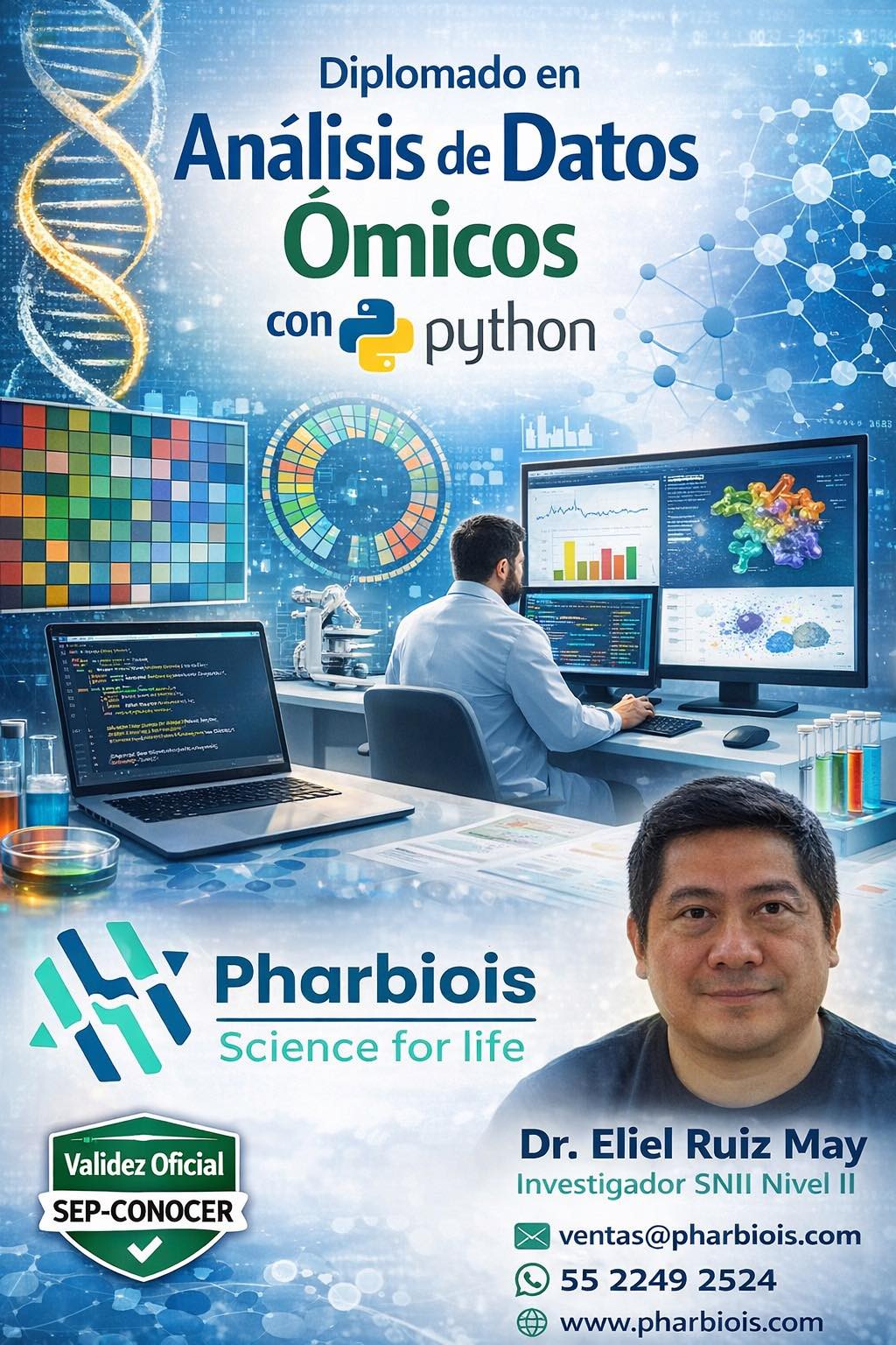 El Diplomado está diseñado para quienes buscan aprender a diseñar, analizar e interpretar datos en investigaciones biomédicas y farmacéuticas. A lo largo del diplomado se abordarán temas desde el diseño de un protocolo experimental, el cálculo del tamaño de muestra y la organización de bases de datos, hasta la selección adecuada de pruebas estadísticas según el tipo de estudio. El Diplomado es teórico-práctico, con ejercicios reales usando Excel, SPSS y GraphPad (en versiones académicas de prueba), y se imparte de manera virtual asincrónica, con posibilidad de sesiones en vivo para resolver dudas. El temario está estructurado en tres niveles: básico, intermedio y avanzado, e incluye temas como estadística descriptiva, pruebas de normalidad, chi cuadrada, ANOVA, regresión, curvas ROC, modelos lineales, validación de instrumentos y más. Se recomienda tener conocimientos básicos en investigación y manejo de hojas de cálculo. Esta formación es útil para estudiantes de posgrado, investigadores, profesionales del área de la salud y personal de la industria farmacéutica que deseen mejorar sus capacidades en análisis de datos y toma de decisiones basada en evidencia.